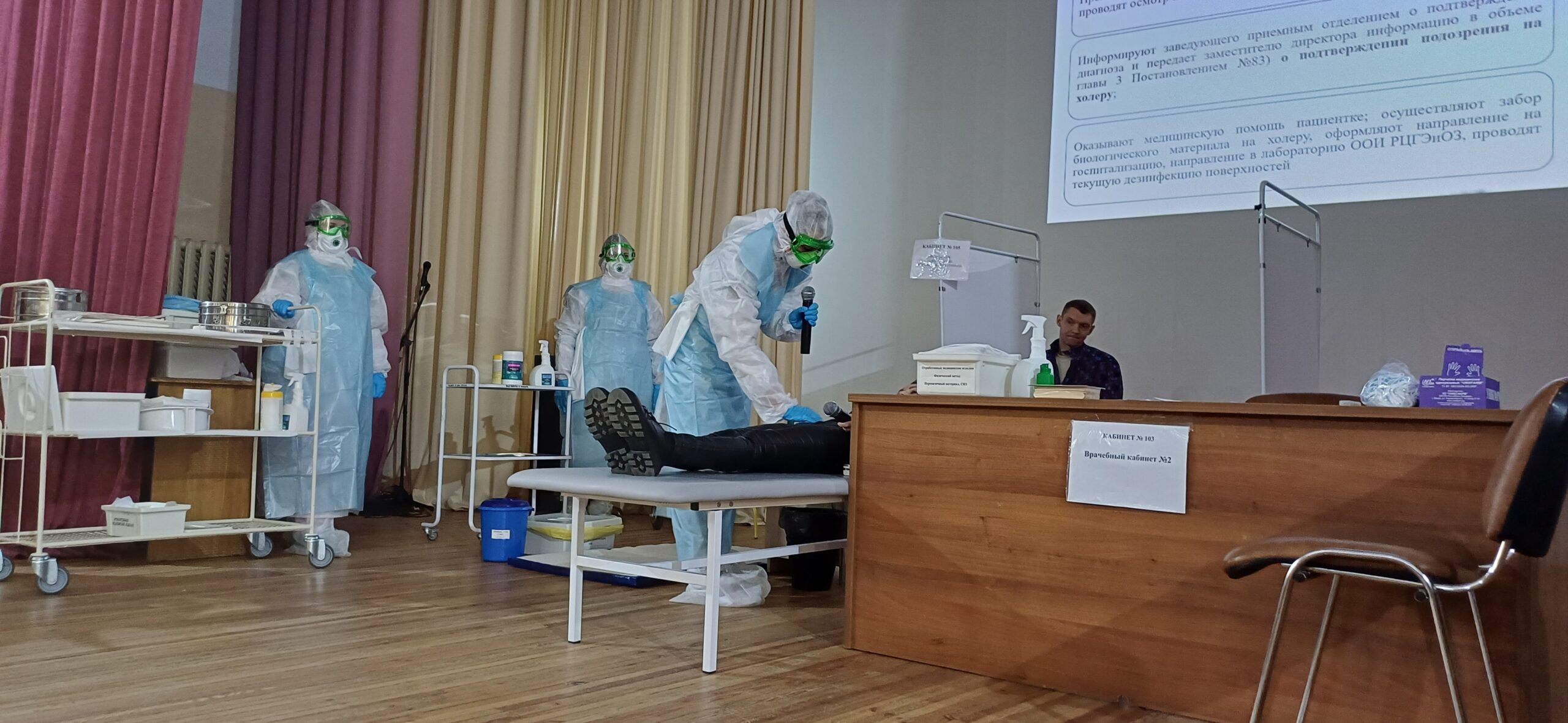 По сценарию в приемное отделение РНПЦ психического здоровья поступила пациентка с симптомами, не исключающими холеру, из анамнеза установлено, что она недавно вернулась из служебной командировки в Индии.